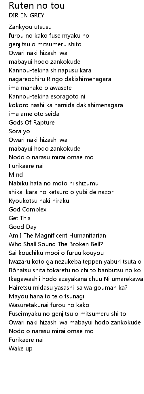 | [03:01.81] | Iwazaru koto ga nezukeba teppen yaburi tsuta o noboru |