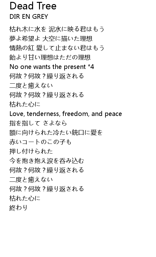| [00:51.700] | 枯れ木に水を 泥水に映る君はもう |