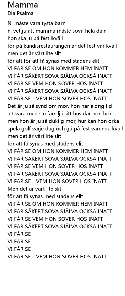 | VI F R SE VEM HON SOVER HOS INATT | |