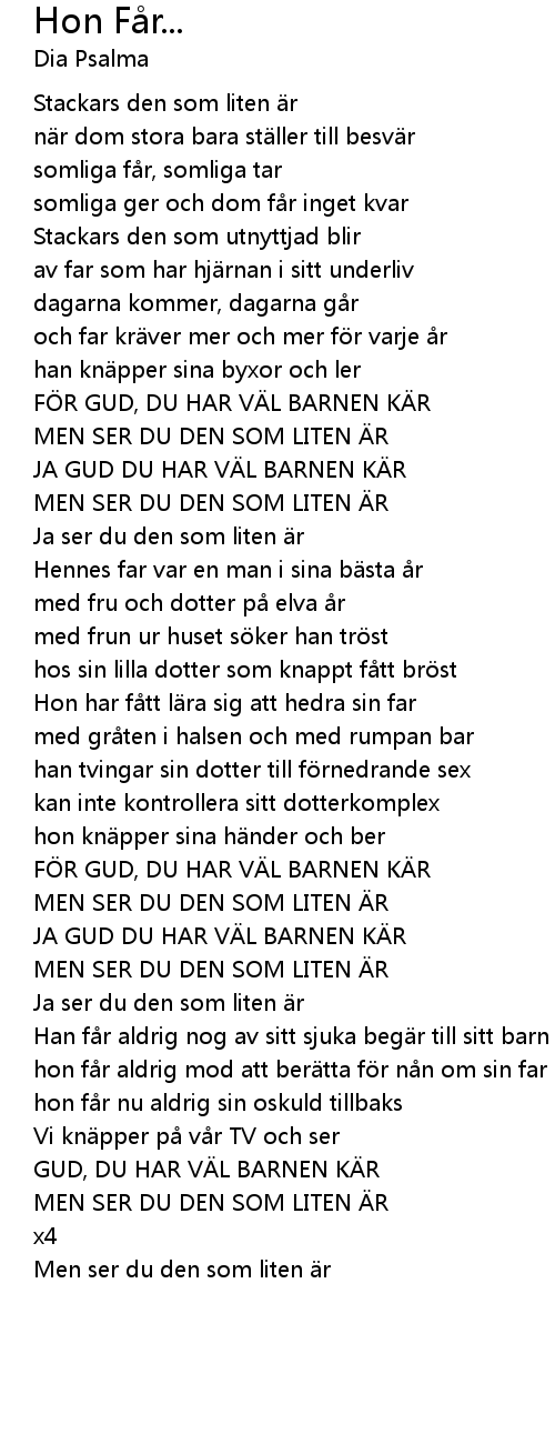 | Han f r aldrig nog av sitt sjuka beg r till sitt barn | |