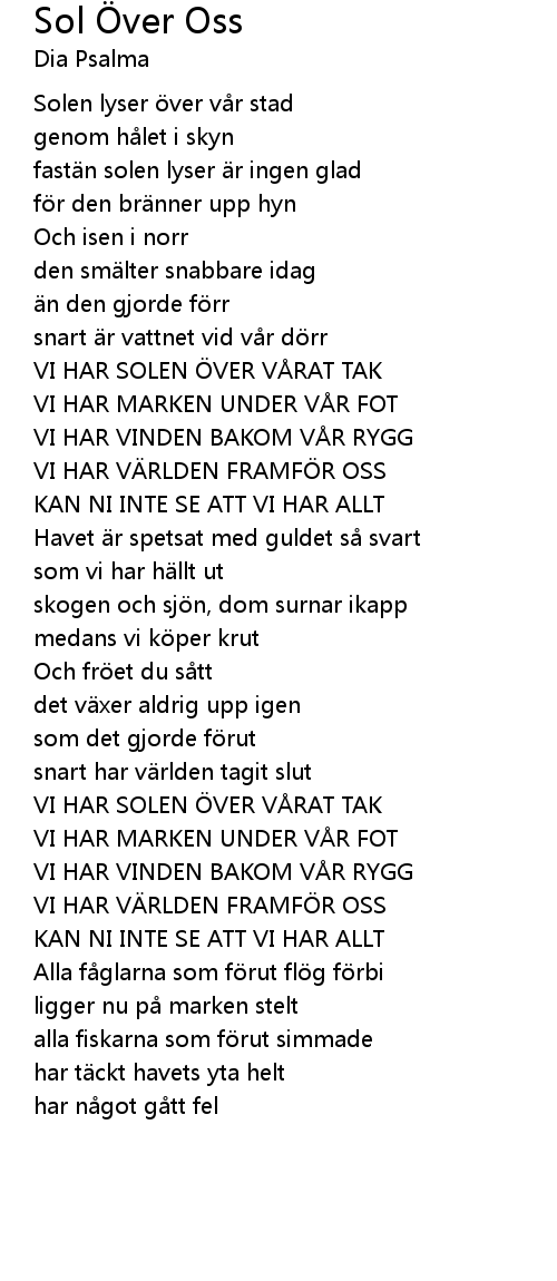 | VI HAR SOLEN ÖVER VÅRAT TAK | |