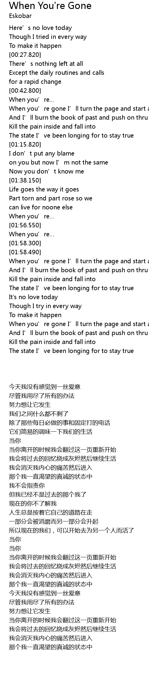 | [03:19.560] | When you' re gone I' ll turn the page and start a new |