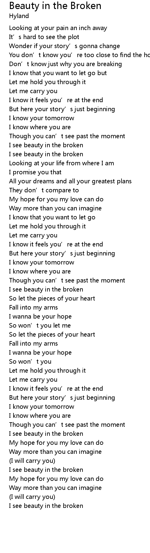 | Song | Beauty in the Broken |