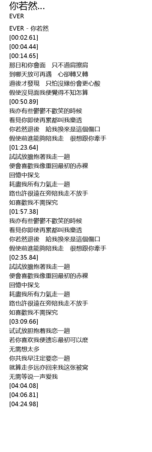 | [00:00.85] | EVER nǐ ruò rán |