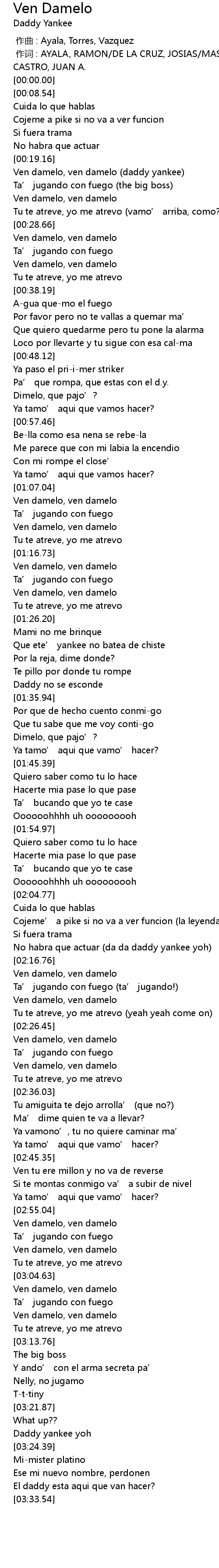| [00:19.26] | Ven damelo, ven damelo daddy yankee |