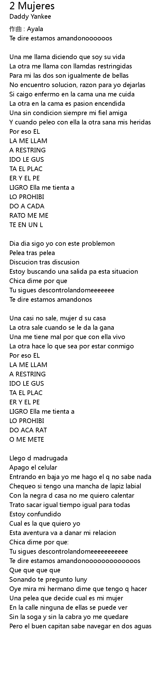 | Song | 2 Mujeres |