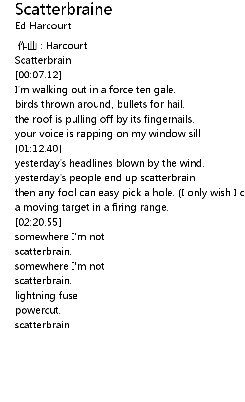 | [00:03.31] | Scatterbrain |