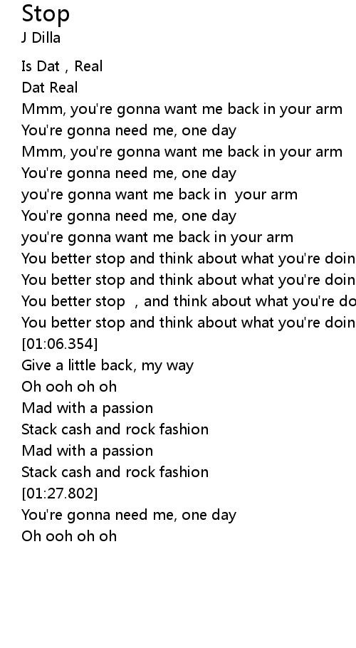 | [01:32.288] | You're gonna need me, one day |
