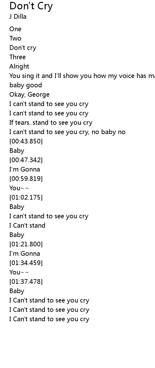 | [00:36.085] | I can't stand to see you cry, no baby no |