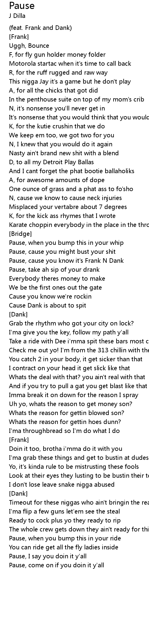 Pause, cause you know it's Frank N Dank |