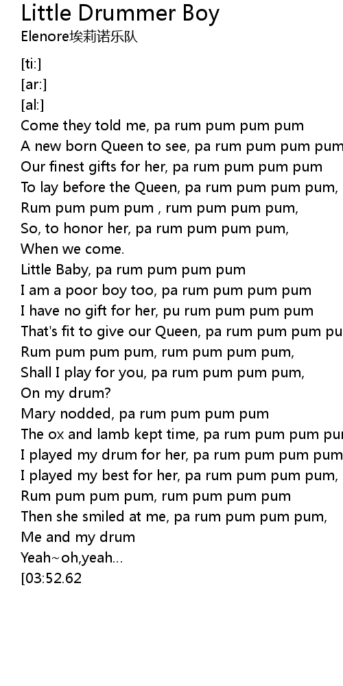 | [02:37.25] | I played my drum for her, pa rum pum pum pum |