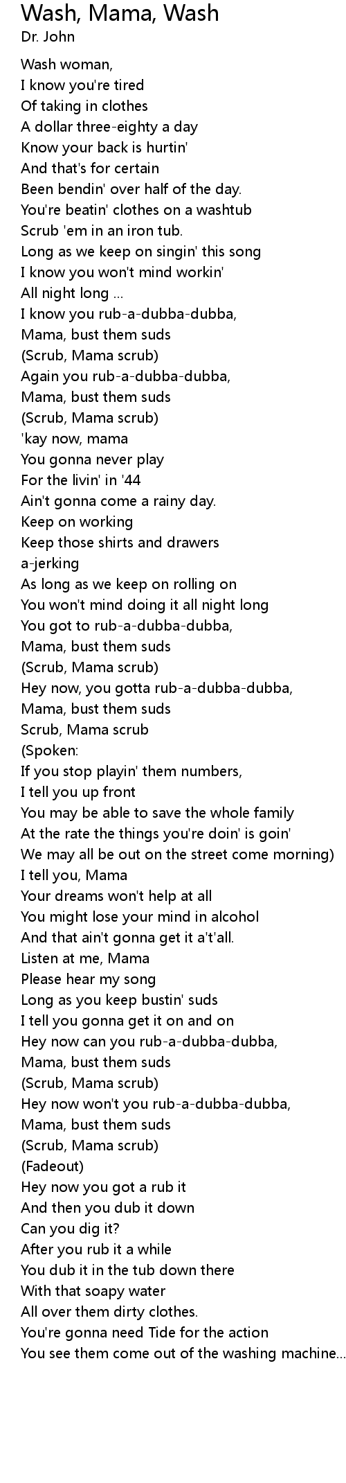 Hey now, you gotta rub-a-dubba-dubba, |