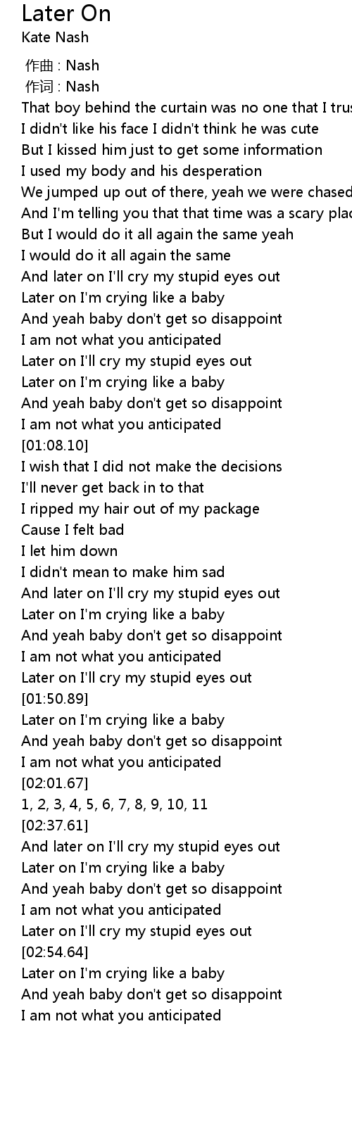 | [00:44.06] | Later on I'm crying like a baby |