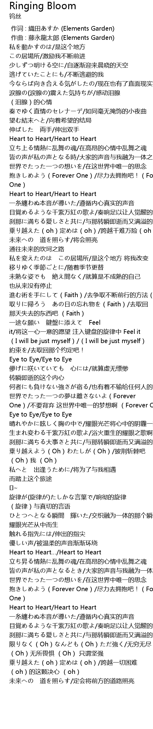| [02:22.353] | 一途な願い 鍵盤に添えて Feel it/将这一心一意的愿望 注入键盘的旋律中 Feel it |
