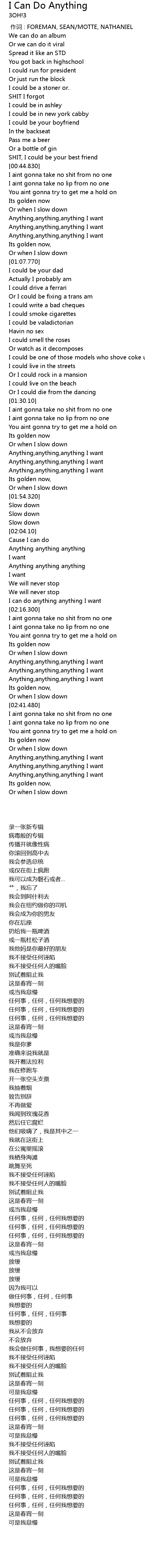 | [02:58.10] | Anything, anything, anything I want |