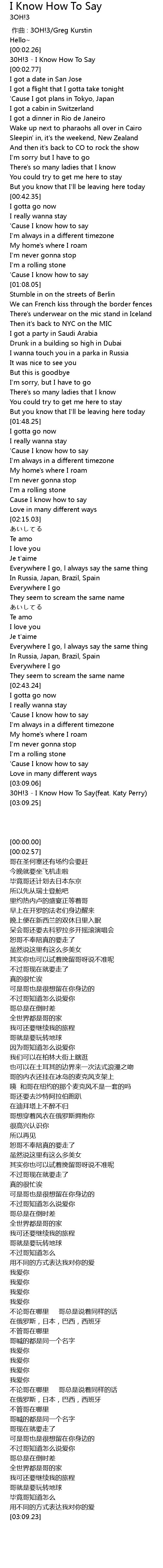 | [00:02.57] | 30H!3 - I Know How To Say |