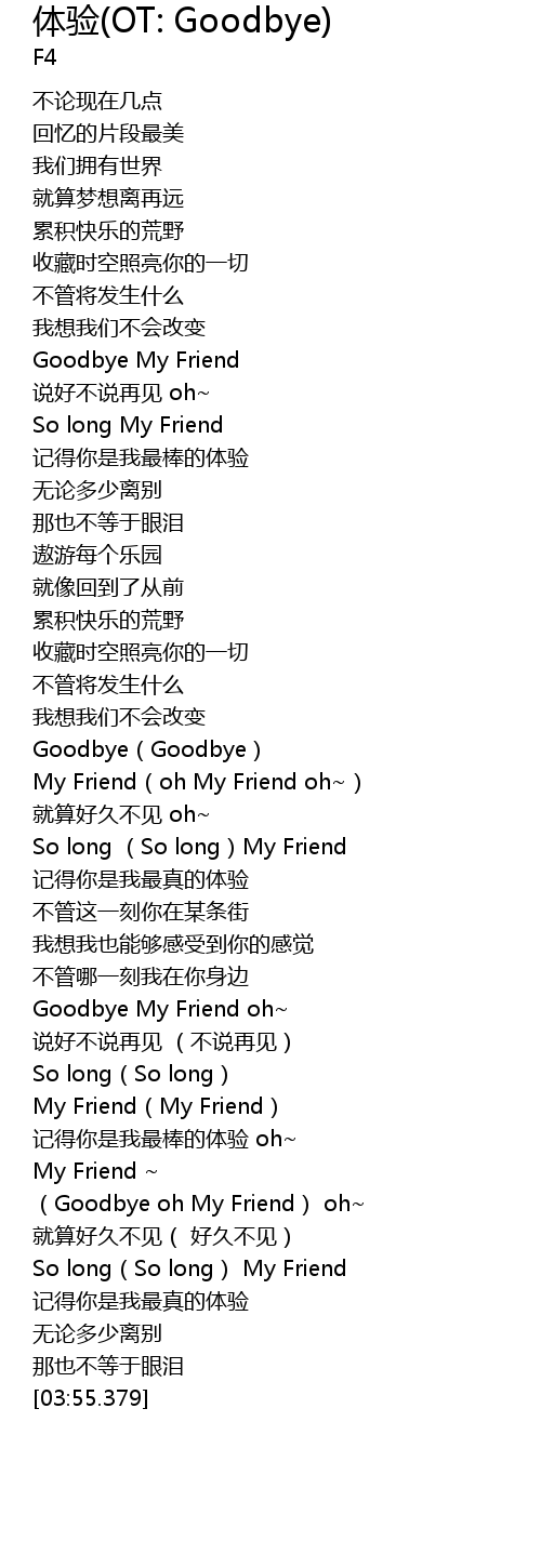 | [03:19.350] | (Goodbye oh My Friend) oh~ |