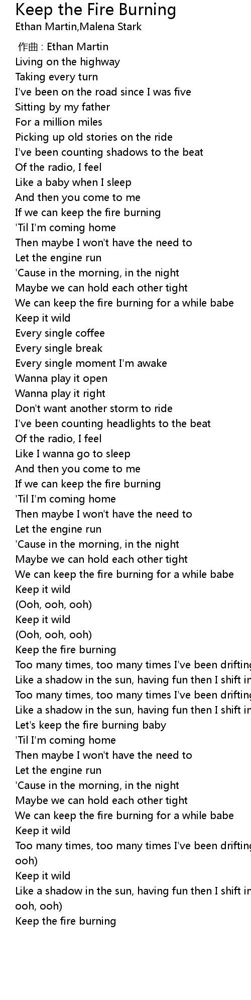 | [01:13.995] | We can keep the fire burning for a while babe |