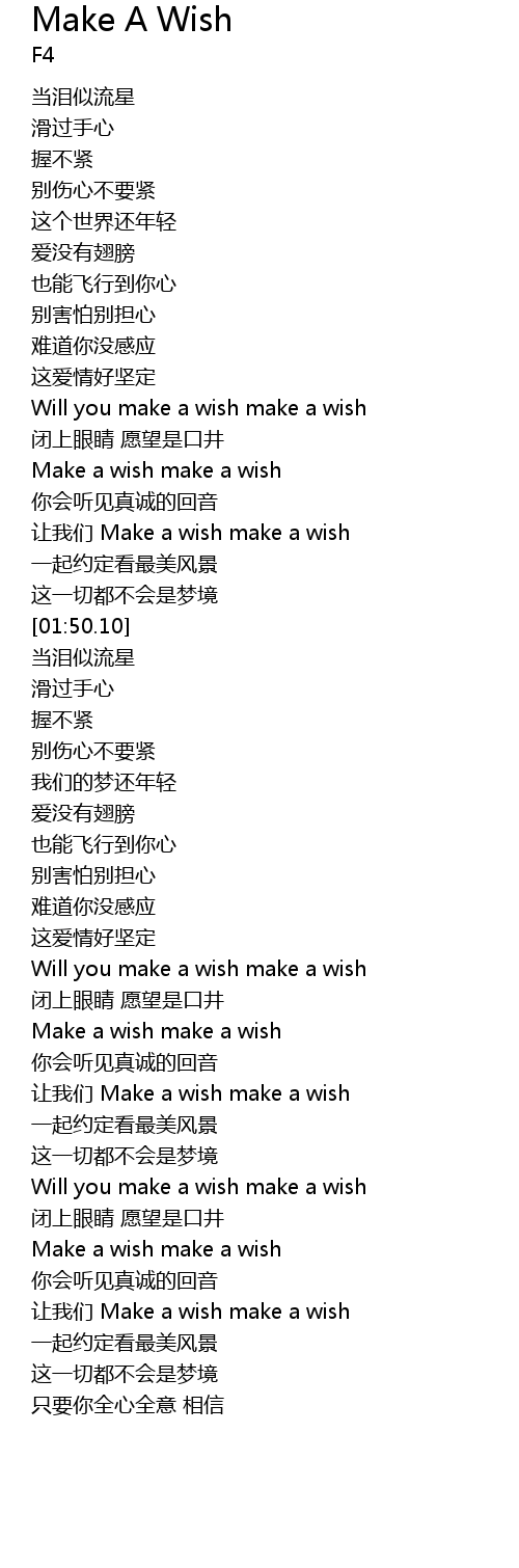 | [03:47.05] | ràng wǒ men Make a wish make a wish |