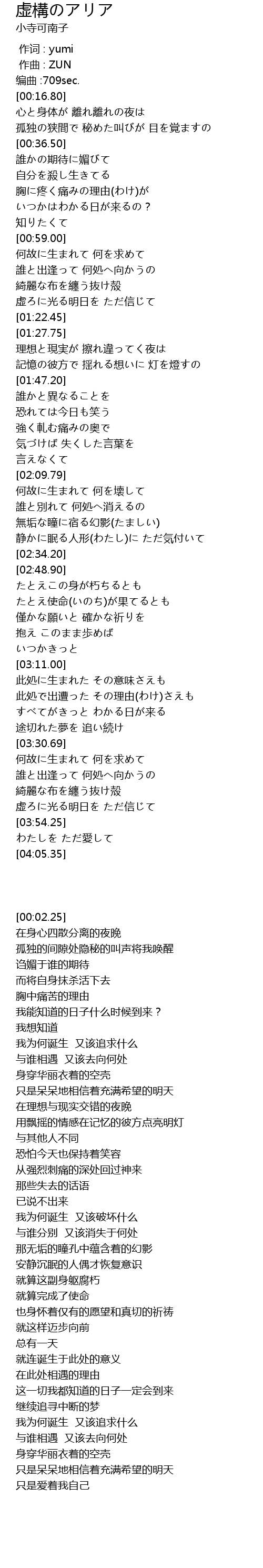 | [03:40.25] | 綺麗な布を纏う抜け殻 |