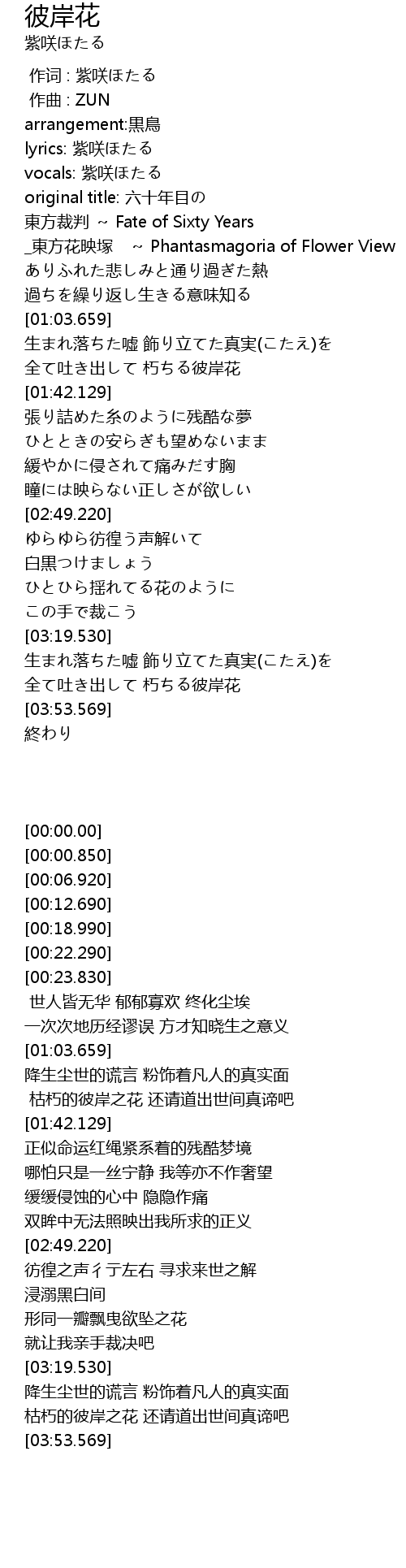 | [03:33.610] | 全て吐き出して 朽ちる彼岸花 |