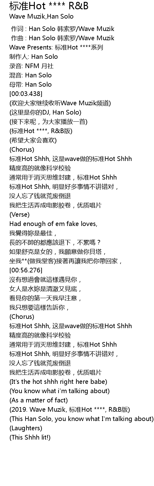 | [00:14.392] | 标准Hot Shhh, 这是wave做的标准Hot Shhh |