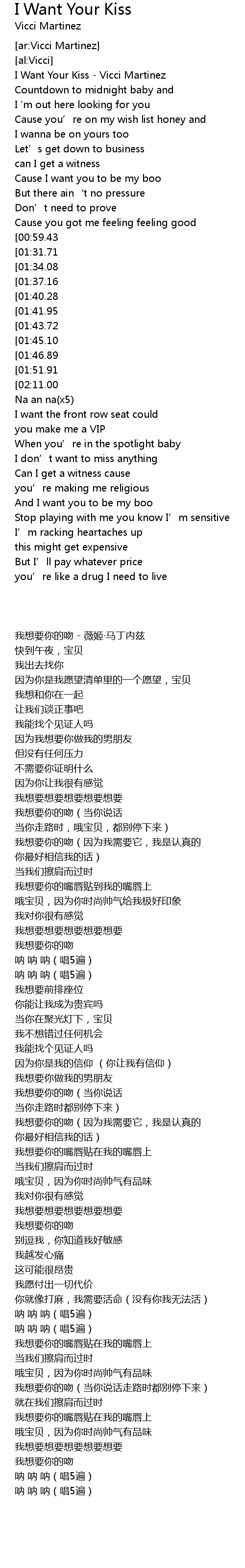 | [00:03.89] | I Want Your Kiss Vicci Martinez |