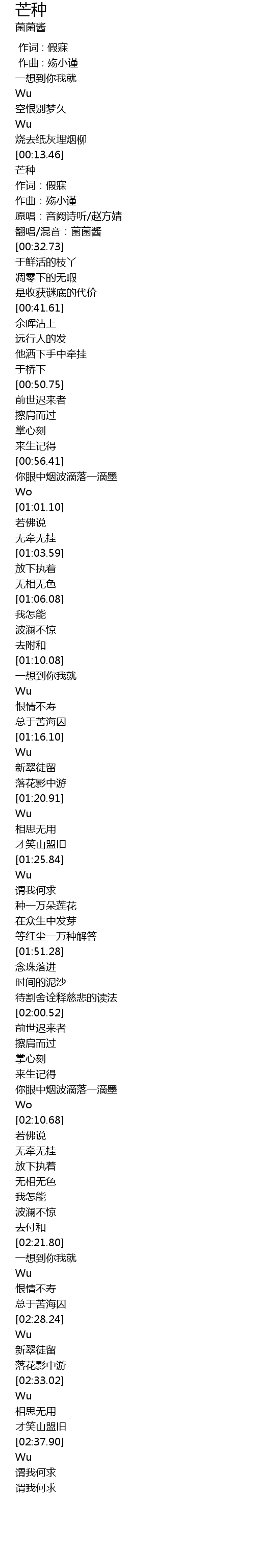 | [00:30.57] | 翻唱/混音:菌菌酱 |