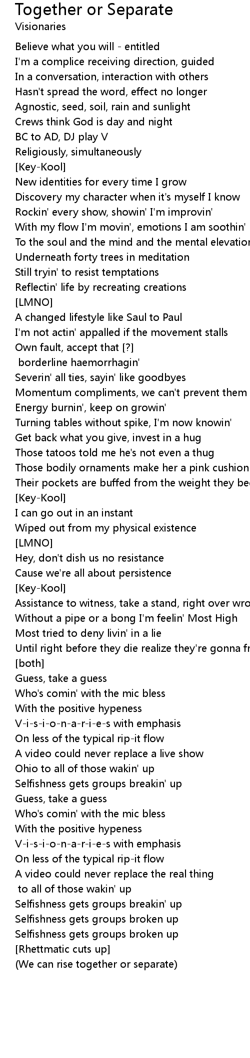 (We can rise together or separate) |