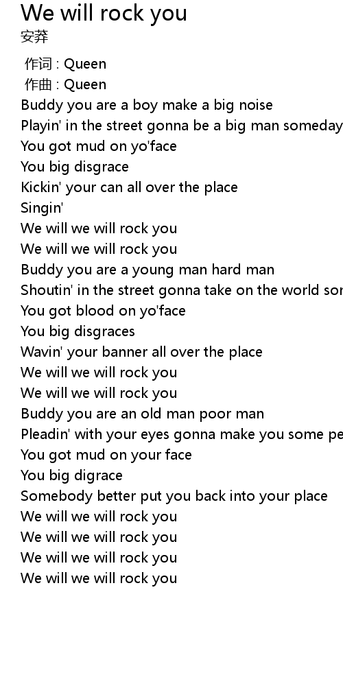 | [00:12.683] | Buddy you are a boy make a big noise |