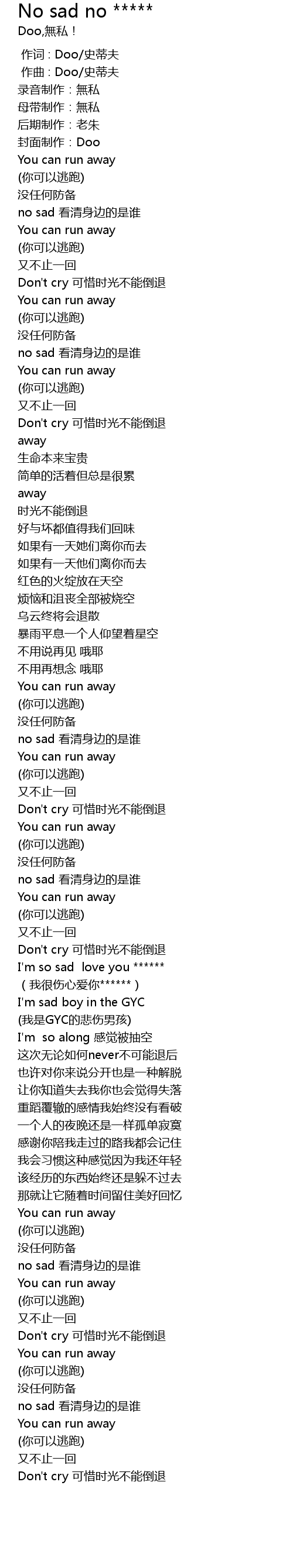 | [00:12.824] | no sad kan qing shen bian de shi shui |