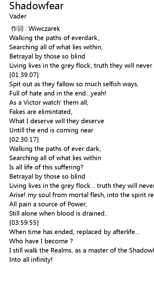 | [04:32.68] | I still walk the Realms, as a master of the ShadowFear, |