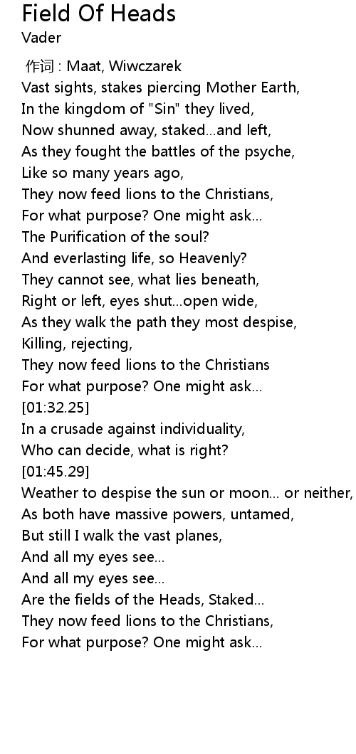 | [02:23.97] | Are the fields of the Heads, Staked... |