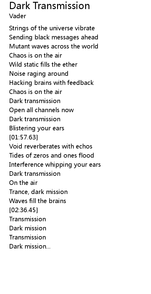 | [01:45.16] | Dark transmission |