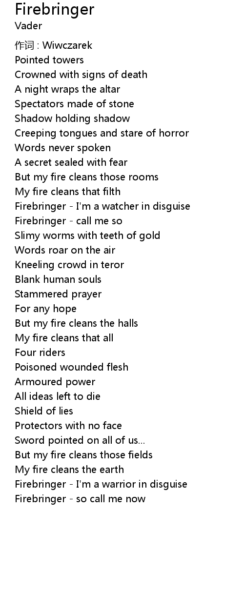 | Firebringer I' m a warrior in disguise | |