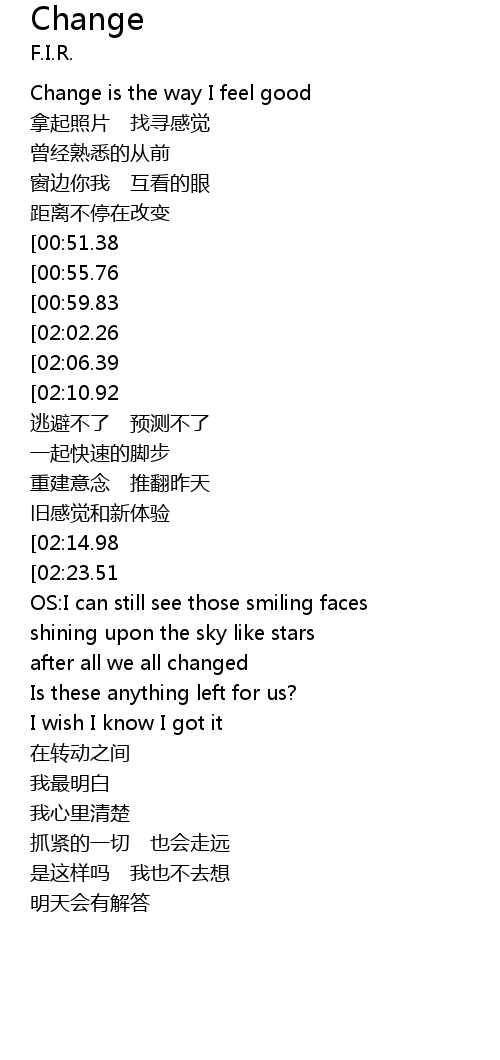 | [00:17.10] | Change is the way I feel good |