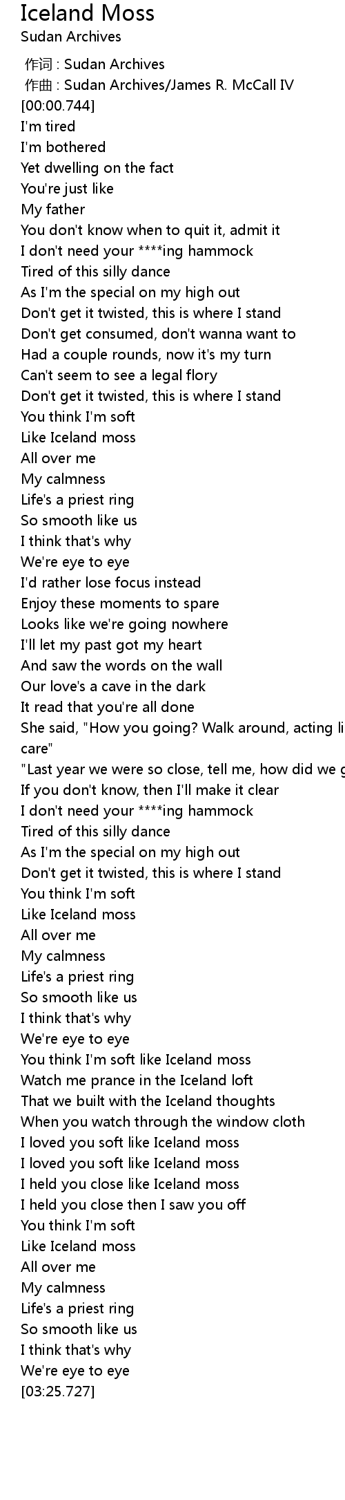 | [02:36.042] | You think I'm soft like Iceland moss |