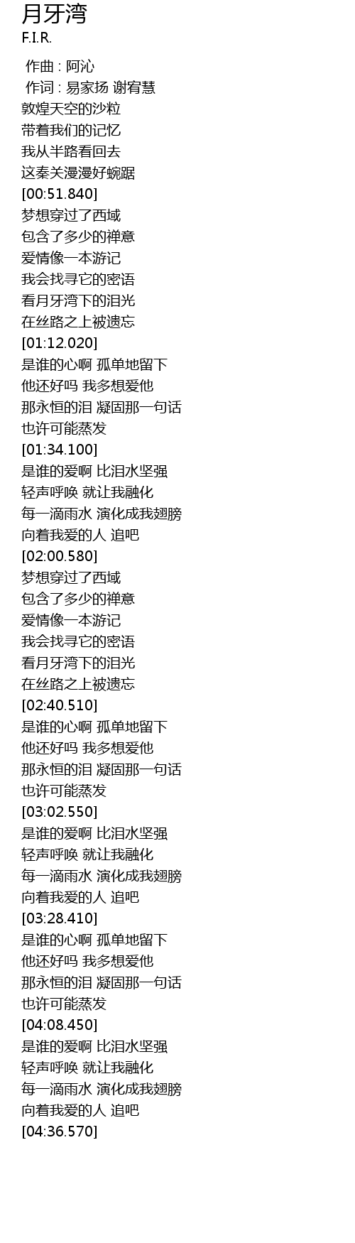 | [02:31.390] | 看月牙湾下的泪光 |
