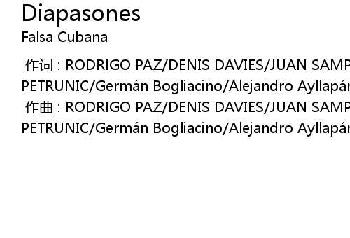| [00:00.00-1] | zuò cí : RODRIGO PAZ DENIS DAVIES JUAN SAMPINI JUAN FANTAGUZZI IVAN PETRUNIC Germá n Bogliacino Alejandro Ayllapá n Lautaro Lefuman |