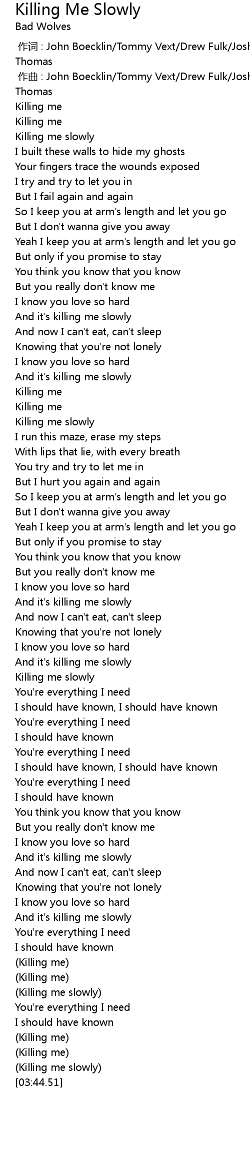 | [03:40.70] | (Killing me slowly) |
