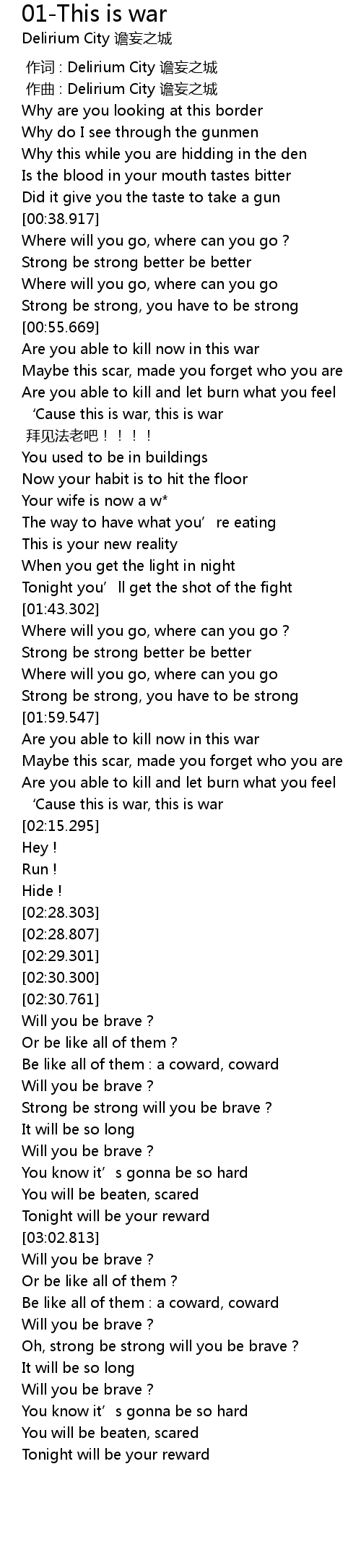 | [02:11.805] | ‘Cause this is war, this is war |