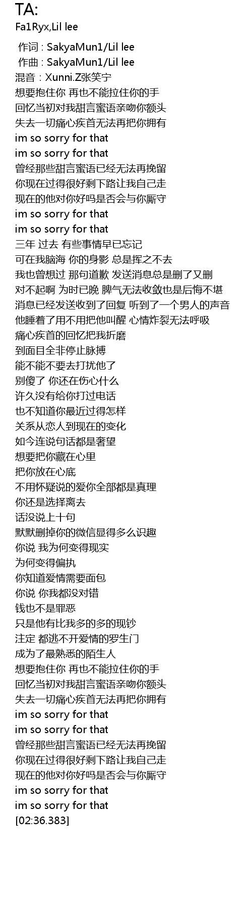| [00:00.000] | 作词 : SakyaMun1/Lil lee |
