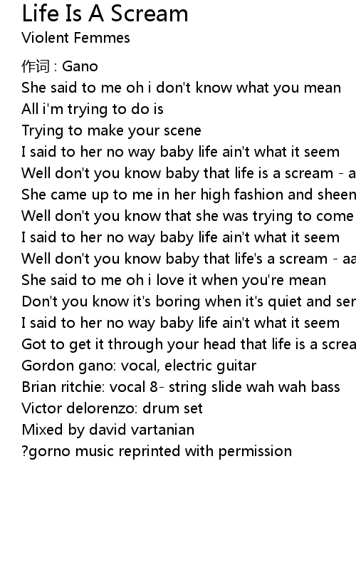 | Well don' t you know baby that life' s a scream aagh | |