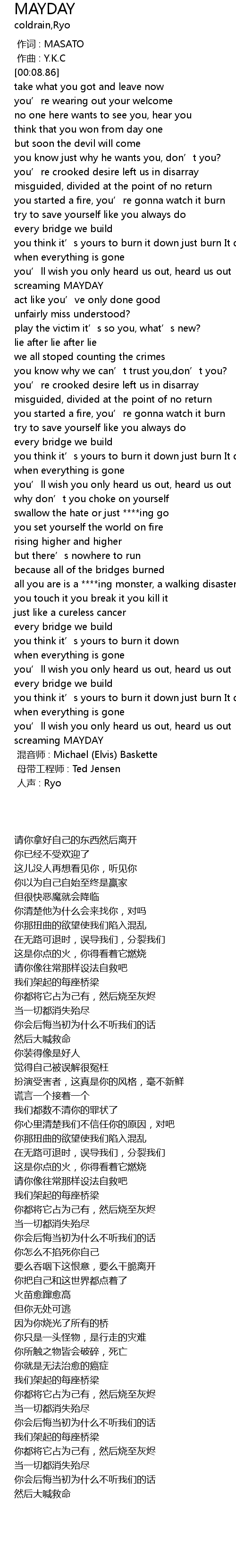 | [03:24.80] | screaming MAYDAY |