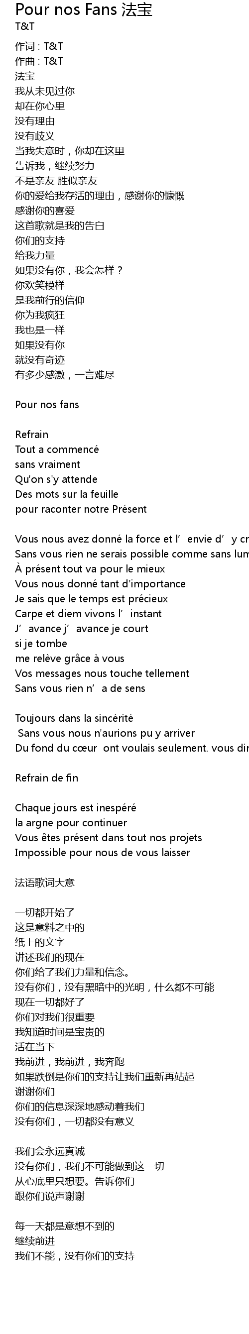 | Song | Pour nos Fans 法宝 |