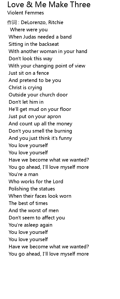| Song | Love & Me Make Three |