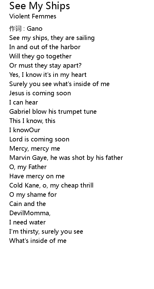 | Song | See My Ships |