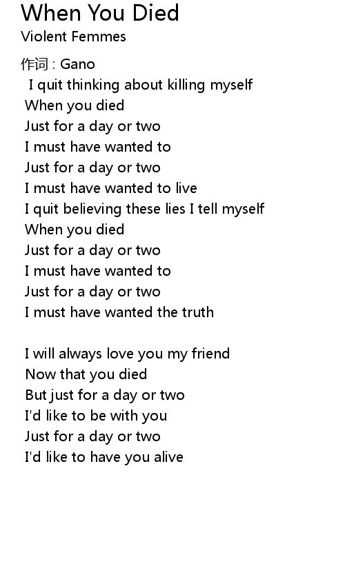 | Song | When You Died |