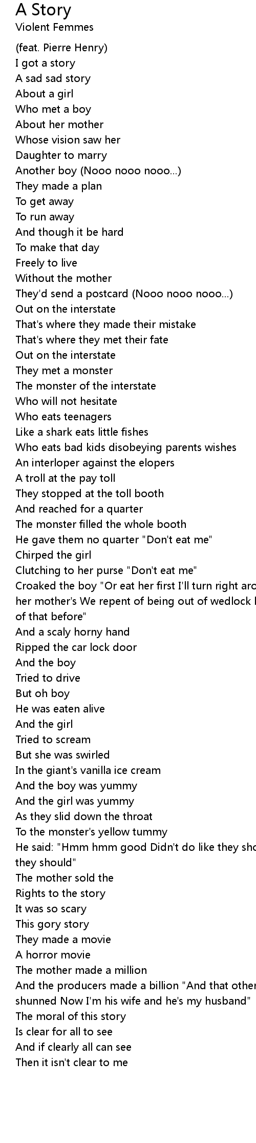 Croaked the boy "Or eat her first I'll turn right around And take her back to her mother's We repent of being out of wedlock lovers" "You should have thought of that before" |
