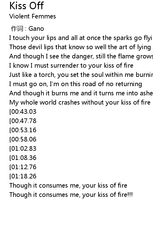 | [01:22.94] | Though it consumes me, your kiss of fire |